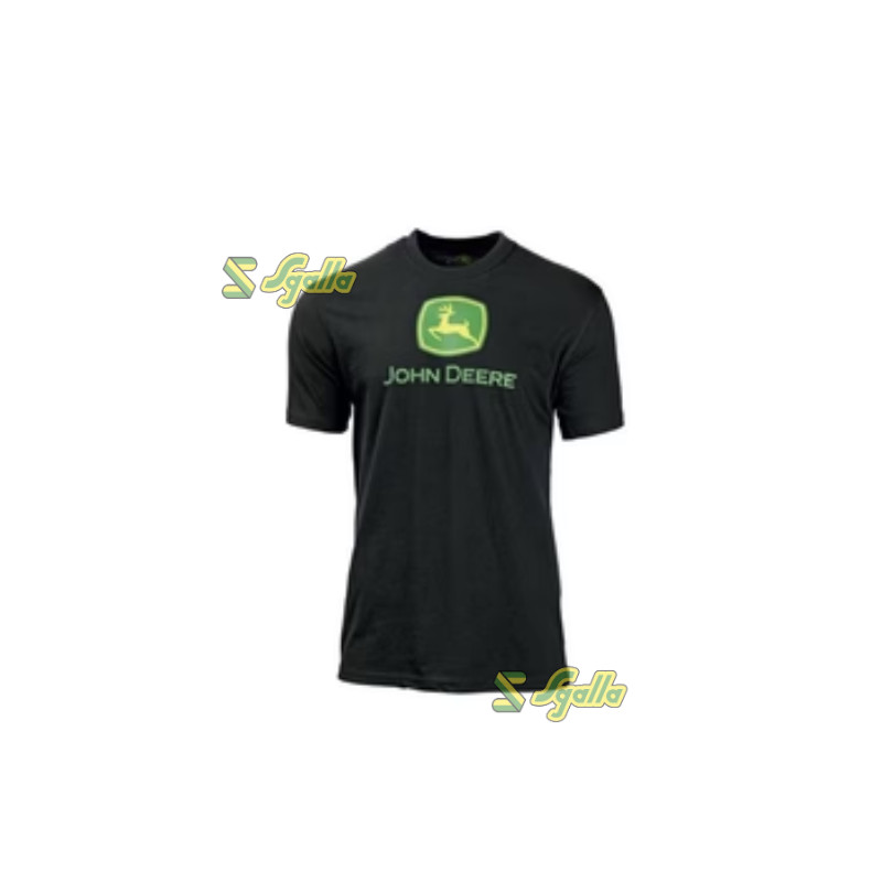 T-shirt girocollo in 100% cotone in colore Nero, con vestibilità classica. Presenta il celebre logo Trademark John Deere stampato in serigrafia sul centro del petto.