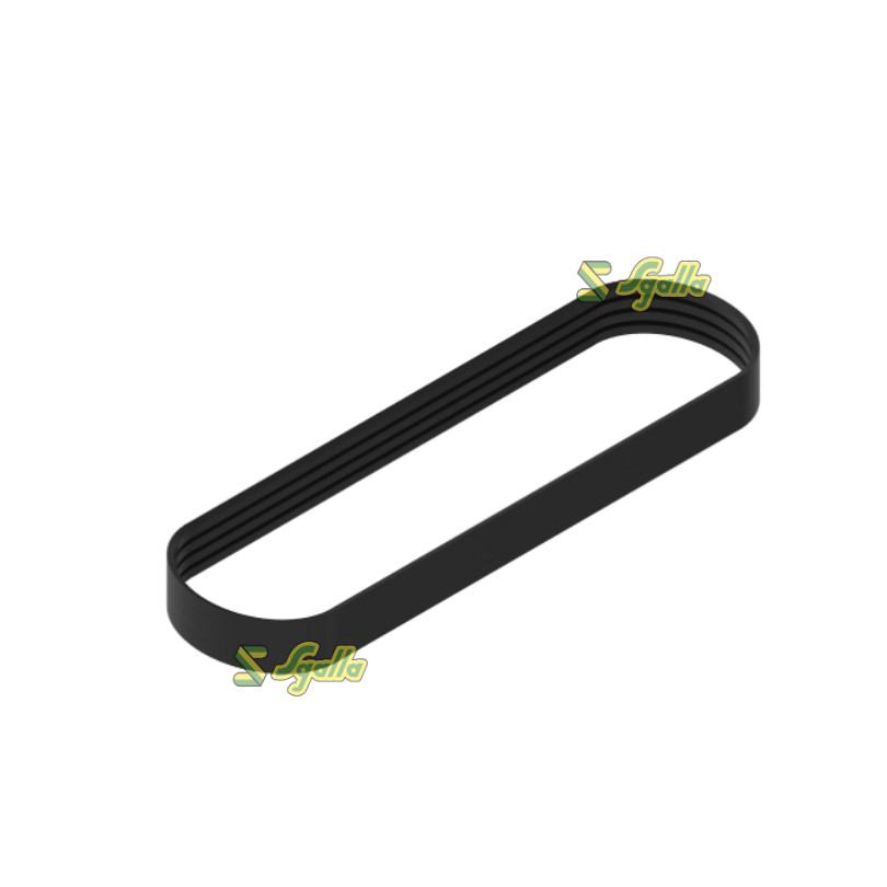 Cinghia John Deere ref. L110391. Cinghia trapezoidale di trasmissione ausiliaria del motore. Questa cinghia è progettata per operare sui motori dotati di aria condizionata e tenditore meccanico, garantendo l'affidabile azionamento del compressore A/C, dell'alternatore e della pompa dell'acqua. Le specifiche tecniche di questa cinghia sono: lunghezza effettiva di 2215 mm (87 pollici), con 8 nervature e sezione PK.