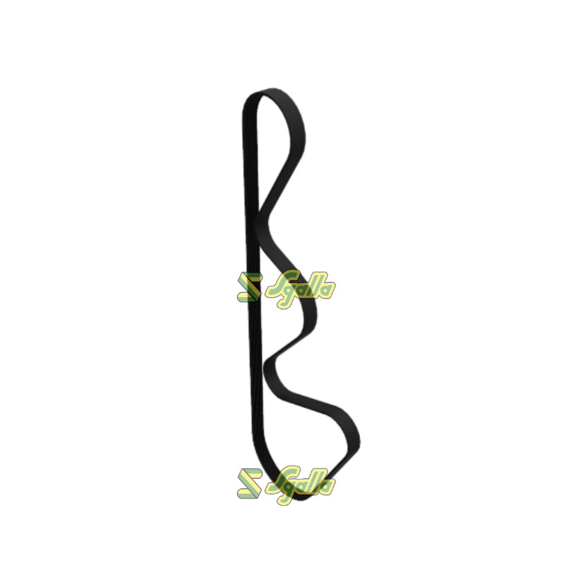 Cinghia John Deere ref. L169273. Cinghia Poly-V (scanalata) utilizzata nel circuito ausiliario del motore (come alternatore, ventola, pompa dell'acqua o compressore del climatizzatore). Questo tipo di cinghia, noto anche come cinghia di servizio o serpentine belt, offre una maggiore superficie di contatto e una migliore flessibilità. Misure : lunghezza effettiva 2277 mm (89,6 pollici, ) con 8 nervature. V-BELT, POLY-V-BELT/8PK.