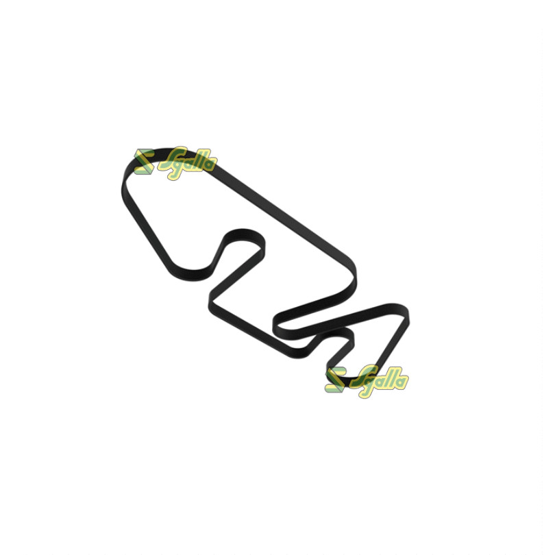 Cinghia John Deere ref. L203294. Cinghia trapezoidale Poly-V di trasmissione ausiliaria del motore. Le specifiche tecniche sono: lunghezza effettiva di 3204 mm (126,1 pollici), con 8 nervature e sezione PK. La sua costruzione 8PK assicura massima aderenza e stabilità laterale, riducendo lo slittamento e l'usura.