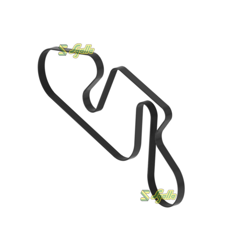 Cinghia John Deere ref. L212327. Cinghia trapezoidale Poly-V di trasmissione ausiliaria del motore con misure : lunghezza effettiva 2930 mm (115,35 pollici), numero di nervature 8, tipo di sezione PK. Soddisfa gli standard di qualità SAE J1459. Questa cinghia è progettata per gestire carichi multipli, garantendo l'affidabile azionamento dell'alternatore, della pompa dell'acqua e del compressore dell'aria condizionata.