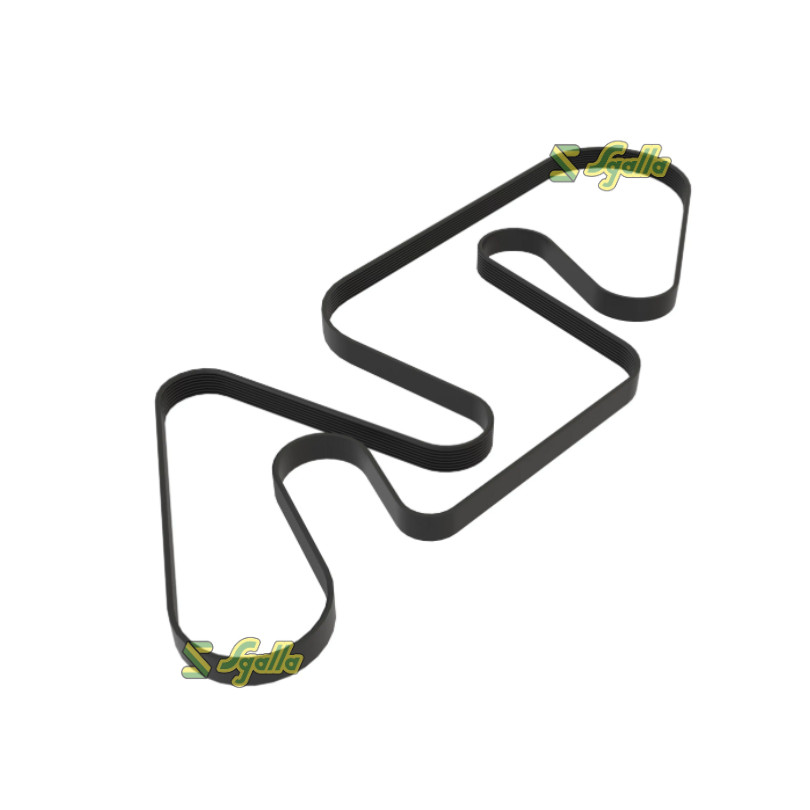 Cinghia John Deere ref. L224901. Cinghia trapezoidale di trasmissione ausiliaria del motore. Cinghia Poly-V con lunghezza effettiva di 3212 mm (126,46 pollici), numero di nervature 8, tipo di sezione PK. La costruzione Poly-V a 8 gole è progettata per gestire carichi multipli e temperature elevate, riducendo lo slittamento e l'usura per assicurare una lunga durata. Soddisfa gli standard di qualità SAE J1459.
