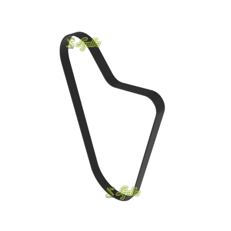 Cinghia John Deere ref. R551297. Cinghia trapezoidale della trasmissione ausiliaria, lunghezza effettiva 1340 mm (52,76 pollici), numero nervature 8 e tipo di sezione PK. Soddisfa gli standard SAE J1459.