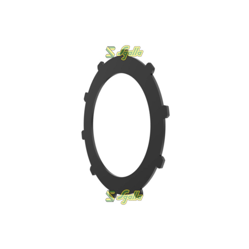 Disco separatore John Deere ref. T28664. Disco - Piastra separatrice originale con sporgenze esterne. Questo componente circolare, classificato come Disco Separatore o Piastra Separativa, è un elemento indispensabile all'interno dei pacchi frizione o freno a bagno d'olio. A differenza dei dischi di attrito, la sua funzione è quella di separare i dischi di frizione e di fornire una superficie di contatto con l'alloggiamento esterno tramite le sue sporgenze esterne.
