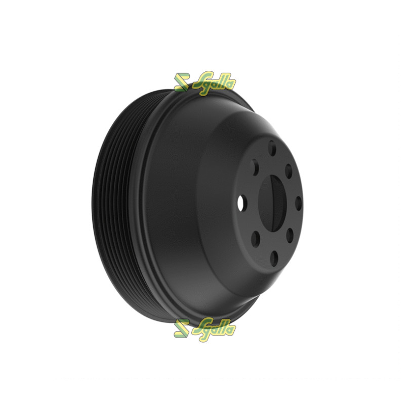 Puleggia John Deere ref. R128660. Puleggia della ventola del motore con dimensioni : Sezione cinghia 08PK, diametro effettivo: 168 mm, lunghezza 78,74 mm.