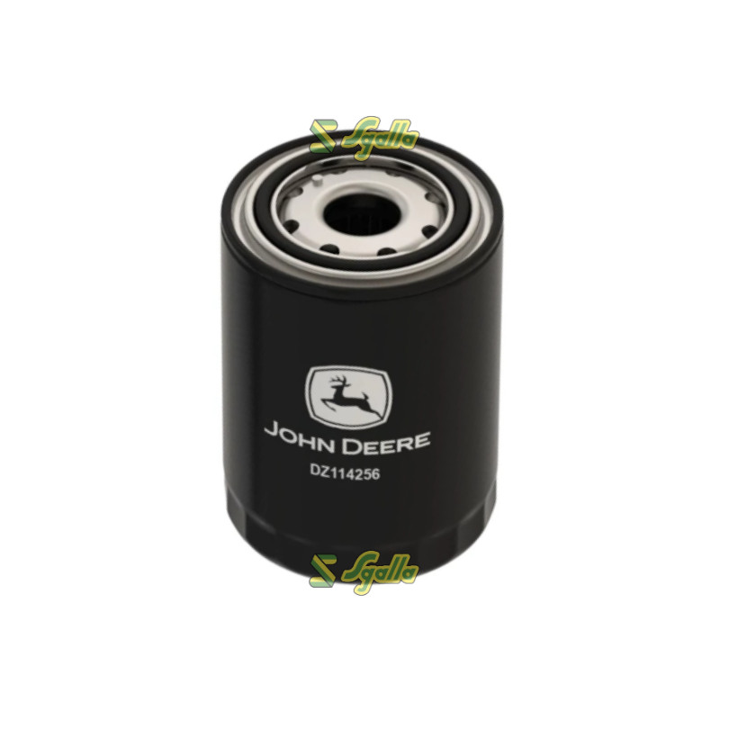 Filtro olio motore John Deere ref. DZ114256. Elemento filtrante dell'olio motore progettato specificamente per catturare le impurità, i detriti e le particelle di metallo presenti nell'olio motore, prima che possano causare usura e danni ai componenti vitali del motore.