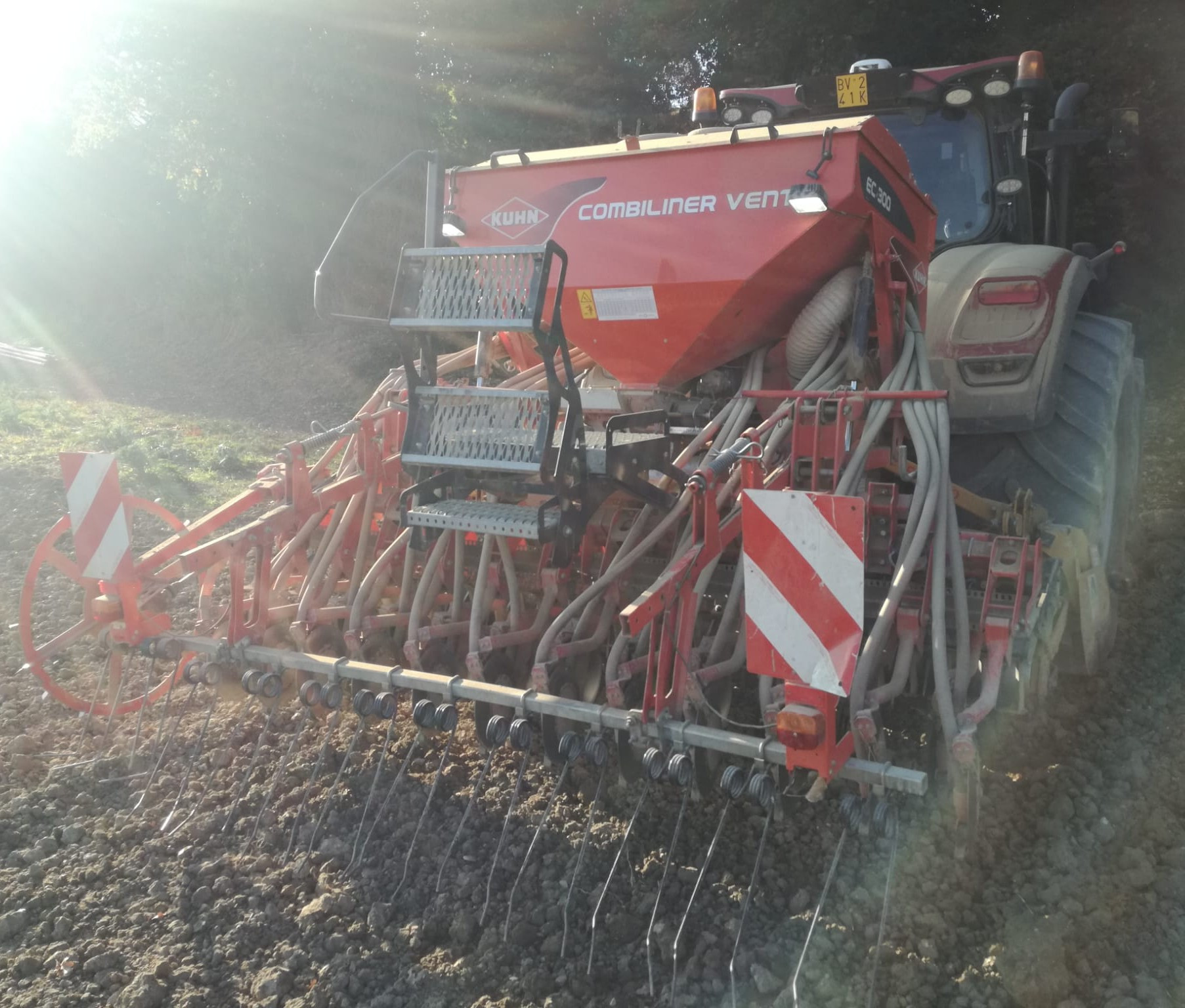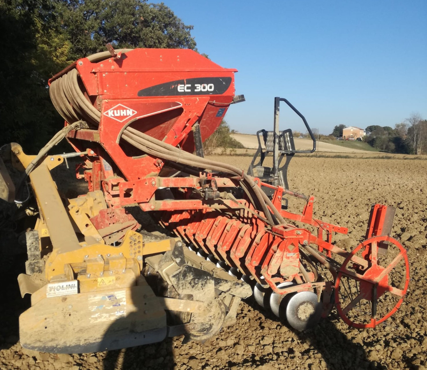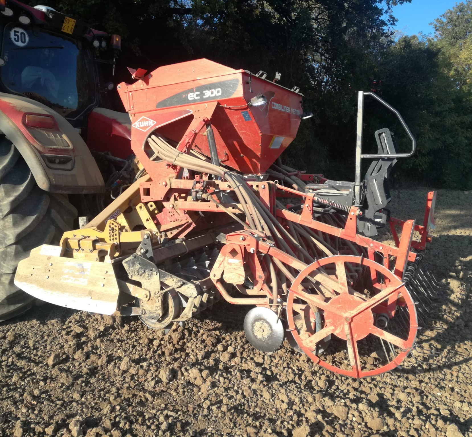 Questa combinata di alta gamma è composta dalla seminatrice pneumatica a disco Kuhn Venta EC 300, nota per la sua estrema precisione. Il sistema di semina è dotato di parallelogramma idraulico indipendente, che garantisce un controllo ottimale della profondità su ogni singola unità, fondamentale per massimizzare la germinazione. L'anno della seminatrice è il 2016.