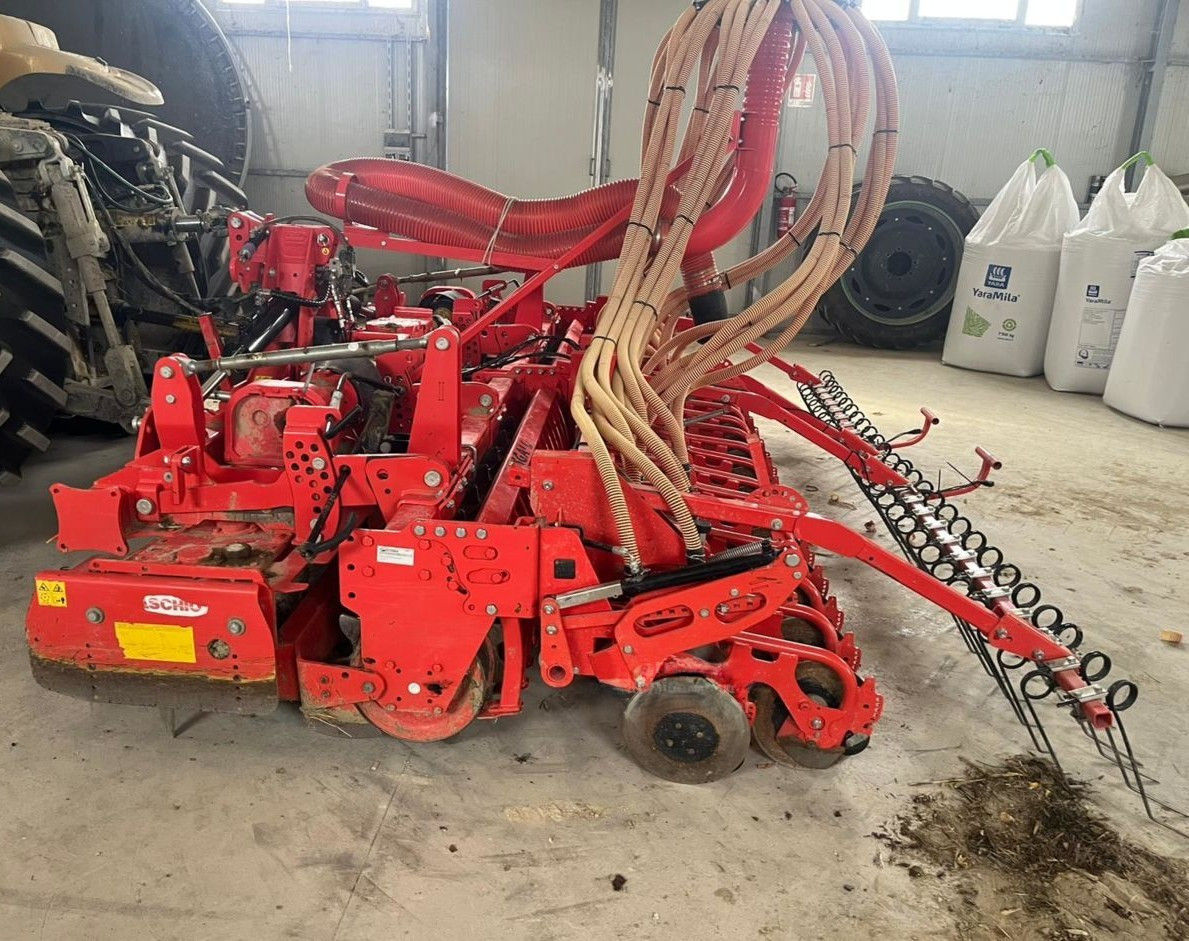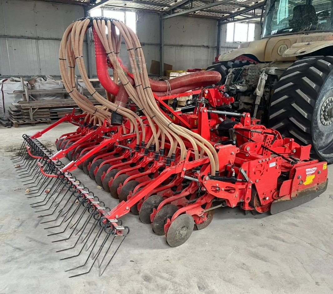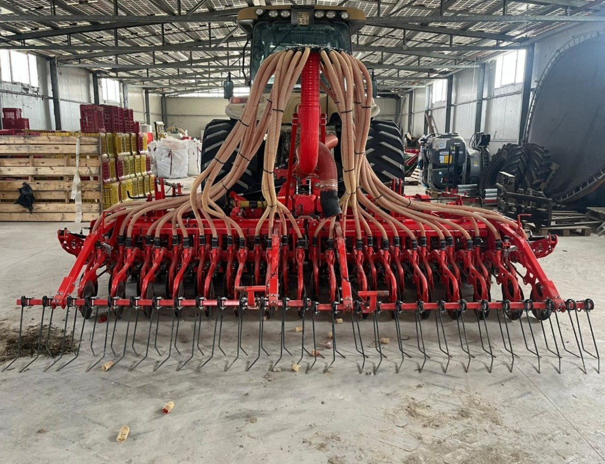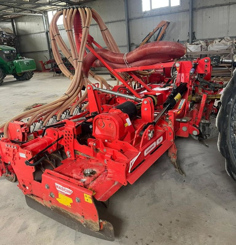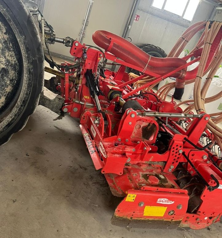 Questa combinata di semina ad alte prestazioni unisce la robustezza dell'erpice rotante all'efficacia della semina pneumatica, offrendo una larghezza di lavoro di 4 metri ideale per un'elevata produttività.